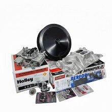 Take the guesswork out of putting together your Small Block Chevy's induction system. This intake and carburettor package includes evertyhing from the intake gaskets to filter for an instant appearance and performance upgrade. The proven combination of Holley carburettor and Edelbrock intake provides improved power, response and weight reduction compared to your original cast iron intake and worn out carburettor. Designed for stock motors or mild camshaft upgrades with stock cylinder heads.