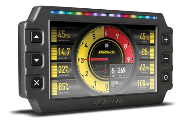 Featuring custom screen displays,I/O sharing (for Haltech Elite & Nexus ECU's only), datalogging, auto-dimming ambient light reactive brightness, user-programmable multi-colour shift light bar, the iC-7 connects directly to all current Haltech ECUs via a CAN network.