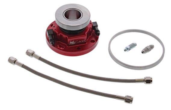 McLeod 1300 Series hydraulic throwout bearings replace your OEM bearing retainer with the finest hard anodized billet aluminum. These high-quality, bolt-on hydraulic throwout bearings are extremely durable and are packaged with high-pressure stainless steel braided lines and premium elbow swivel fittings, making their install much easier. These assemblies are available for several applications and may be used to eliminate the need to fabricate complex clutch linkage when swapping transmissions. McLeod 1300 Series hydraulic throwout bearings offer extreme durability and performance for your street or strip machine.