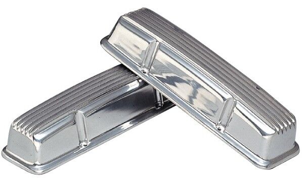 These no-hole finned covers are specifically designed for early small block Chevrolet V-8 engines with the intake-manifold-mounted oil breather tube. These will require custom machining to use on later engines.