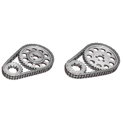 Rollmaster Gold Series double roller timing chain set for Chevrolet Small Block 262-400 engines. Built with billet steel cam and crank sprockets plus a premium IWIS full roller chain, this kit is designed to deliver stable cam timing and dependable durability in performance street, race and engine rebuild applications.