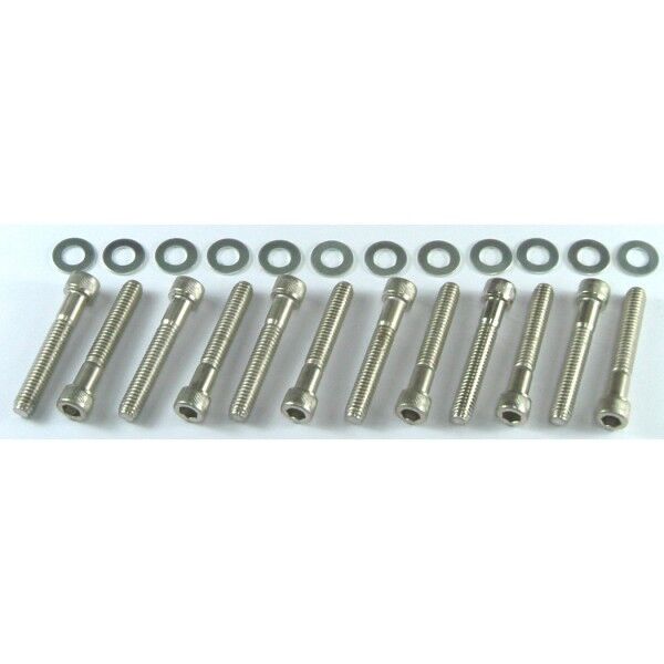 Intake manifold bolt kit to suit Ford Windsor V8 engines. Chrome finish with Allen Key head. Includes stainless steel washers.